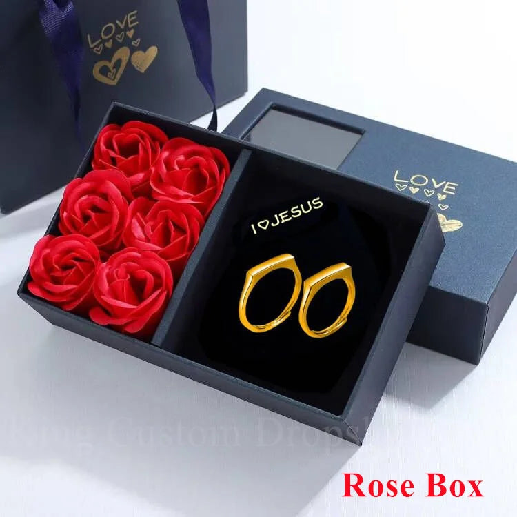 I Love Jesus Couple Jewelry Projection Couple Ring Light Sculpted Adjustable reflecting Ring Valentine's Day Gift for Lover
